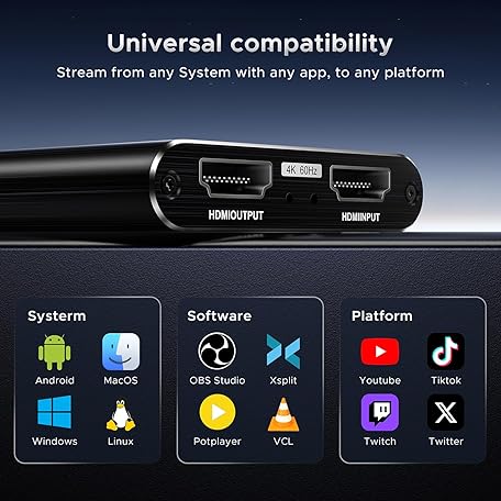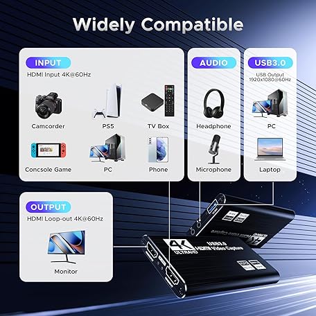 Thông tin sản phẩm XIIXMASK Video Capture Card, USB 3.0 Capture Card 4K HDMI Loop-Out, 1080P 60FPS/2K 30FPS Video Game Capture for Works for PS5/Camera/PC