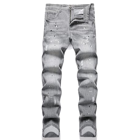 XIMXIMMTIAN Mens Slim Fit Jeans Stretch Ripped Biker Jeans for Men Fashion Straight Comfort Flex Waist Casual Denim Pants