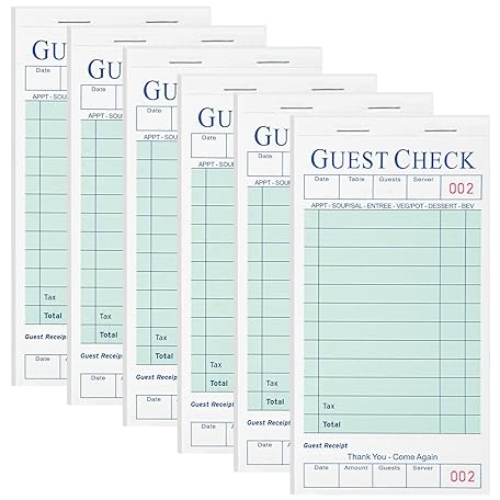 XKDOUS 6 Pack Server Books, Server Note Pads, Guest Check Books for Servers, Waitress Notepads for Restaurants, 300 Orders Total