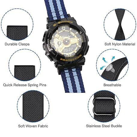 XMHYB Elastic Watch Bands Compatible with Casio 16MM GA-100/G-5600/GA-300/GLS-100/GB-5600/GW-6900/G-Shock DW-5600/8900/GWM5610,Stretchy Soft Adjustable Replacement Nylon Strap
