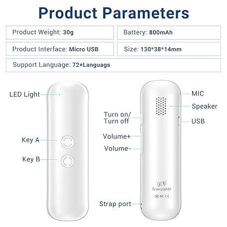 Sản phẩm XURPURTLK Language Voice Translator Device Real Time 2-Way Translations Supporting 72 Languages for Travelling Learning Shopping Business Chat Recording Translations (White) (G5) đang được bán với giá ưu đãi là $41.4091 tại nước Mỹ.