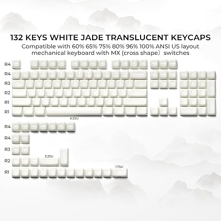 Sản phẩm XVX White Jade Keycaps, Double Shot PBT Keyboard Key caps 132 Keys MDA Profile Keycap Set Compatible with 60%/65%/75%/TKL/96%/100% US Layout Cherry MX Switches Mechanical Keyboard đang được bán với giá ưu đãi là $12.7421 tại nước Mỹ.