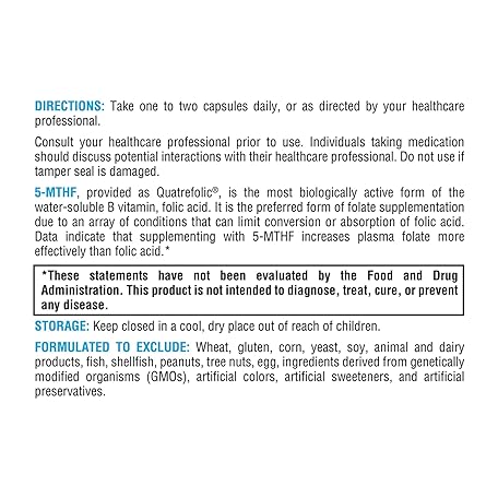 Thông tin sản phẩm XYMOGEN 5 MTHF - 3,400 mcg DFE Bioactive Folate Supplement as Quatrefolic - Cardiovascular, Mood + Methylation Support - Vitamin B Methyl Folate as L Methylfolate (60 Capsules)
