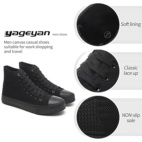 • yageyan Men’s High Top Canvas Sneakers Fashion Lace up Walking Shoes Casual Classic