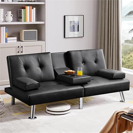 Thông tin sản phẩm Yaheetech Convertible Sofa Bed Adjustable Couch Sleeper Modern Faux Leather Recliner Reversible Loveseat Folding Daybed Guest Bed, Removable Armrests, Cup Holders, 3 Angles, 772lb Capacity, Black