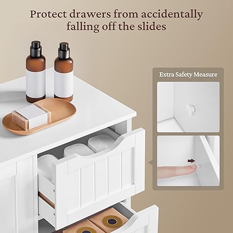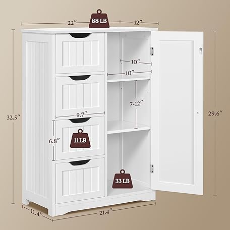 Thông tin sản phẩm Yaheetech Wooden Floor Cabinet, Side Storage Organizer with 4 Drawers and 1 Cupboard, Freestanding Entryway Storage Unit Console Table, Bathroom Furniture Home Decor, White