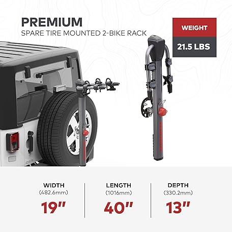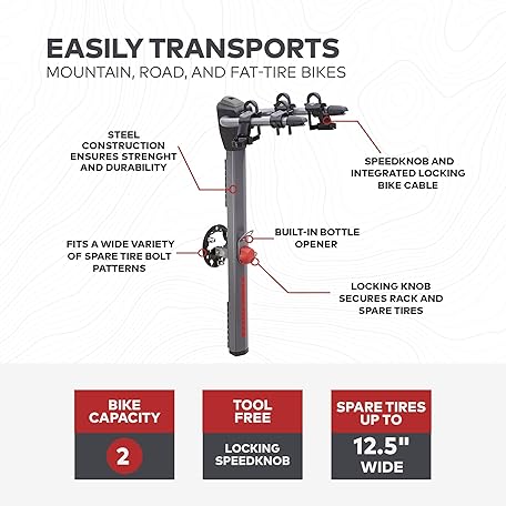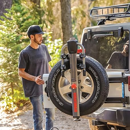 Thông tin sản phẩm Yakima SpareRide Vehicle Rear Spare Tire Mounted Durable Steel Bike Rack with Integrated SKS Locks and Bottle Opener, Holds 2 Bicycles, Gray/Black