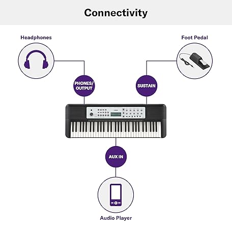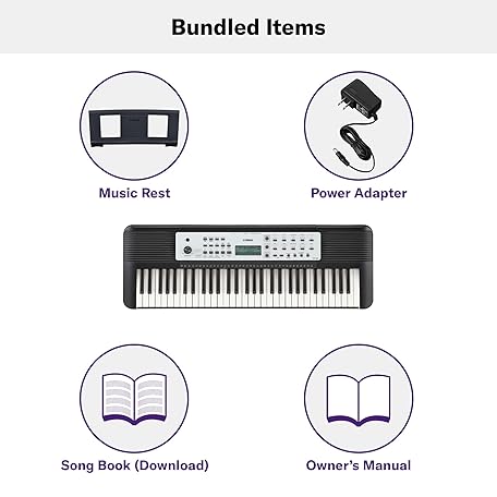 • Yamaha 61-Key Portable Keyboard for Beginners with Built-In Songs, Quiz Mode, Music Rest, with Power Adapter YPT280