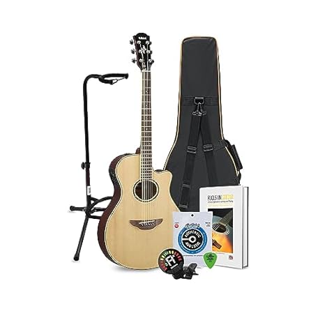 Yamaha APX600NA Thinline Acoustic-Electric Guitar (Natural) Bundle with Carrying Case, Tuner, Guitar Stand, Strings, Book and Picks (7 Items)