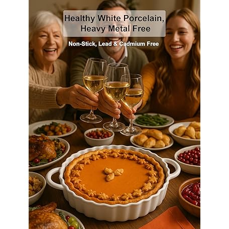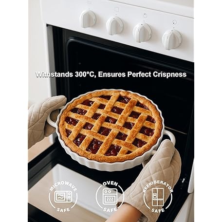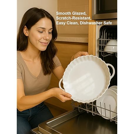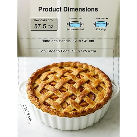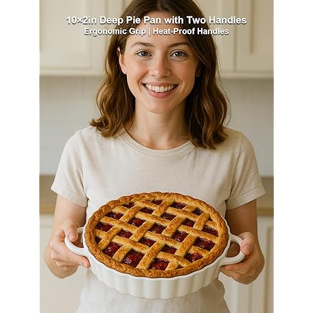 Yamteck 10×2in Deep Ceramic Pie Pan with Handles for Pie Quiche Tart Baking. Easy to grip, Lead-Free. Casserole Lasagna Dish for Thanksgiving Christmas Wedding Gift. Microwave, Dishwasher, Oven Safe