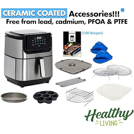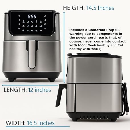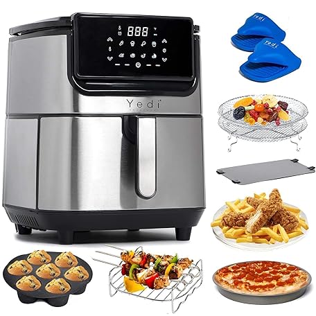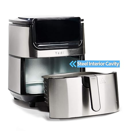 Thông tin sản phẩm Yedi Evolution Air Fryer, 6.8 Quart, Stainless-Steel Finish, Ceramic Cooking Basket, with Deluxe Accessory Kit and Recipe Book
