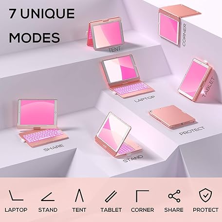 • YEKBEE Case with Keyboard for iPad 9th Generation (10.2", 2021) | 360° | 7 Modes | Backlit | 12 Colors | Thin, Light & Protective for iPad 9, 8th & 7th Gen, Air 3, Pro 10.5 with Pencil Holder