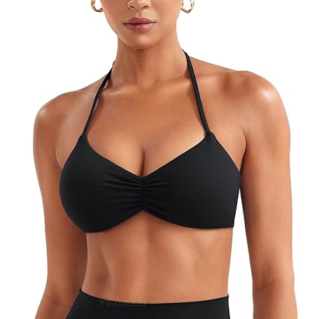 YEOREO Halter Sports Bras for Women Adjustable Strappy Open Back Impact Removable Pads Deep V Bra Workout Gym Yoga Crop Top