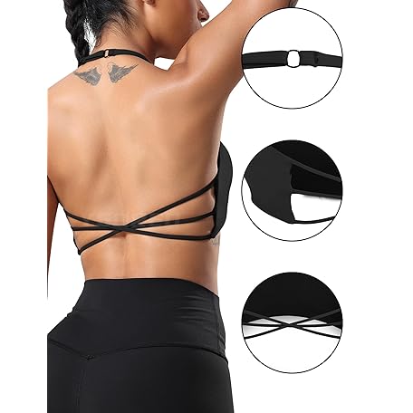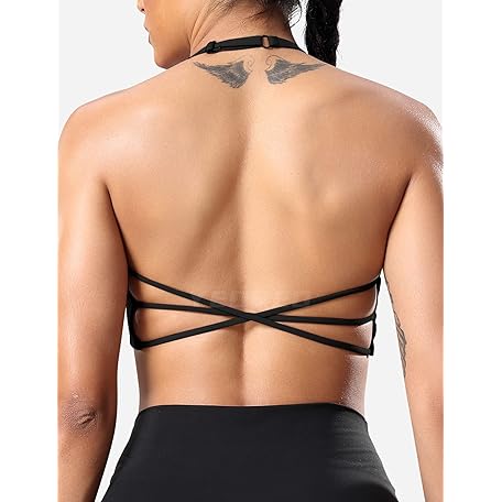 • YEOREO Women's Sports Bra Halter Workout Sports Bra Strappy Criss Cross Back Bra Removable Padded Yoga Crop Top