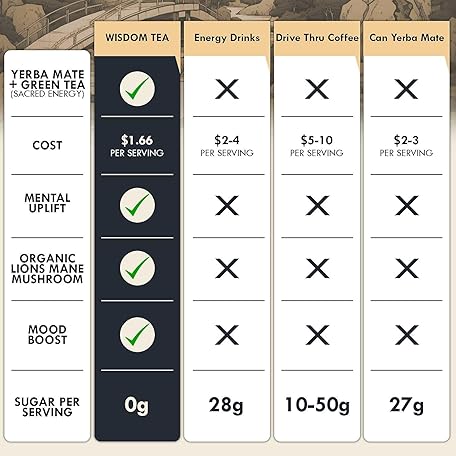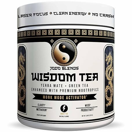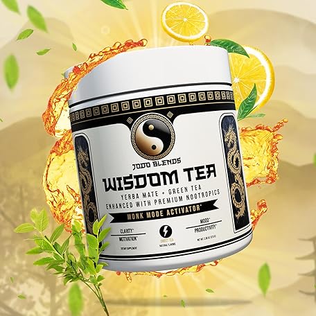 Yerba Mate Focus Tea Powder for Men - Daily Nootropic Drink for Clean Energy, Focus & Mood Support | Powered by Citicoline, L-Theanine, L-Tyrosine & Lion’s Mane | Wisdom Tea - Sweet Tea - 30 Servings