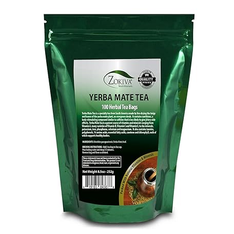Yerba Mate Tea Mega Pack 100 Premium Tea Bags 100% Pure All-Natural Immune System Support Zokiva
