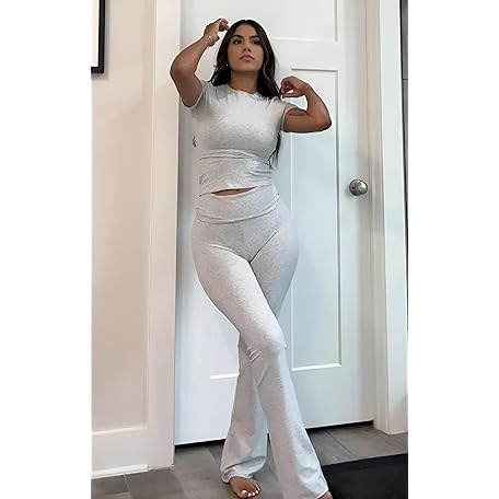 Sản phẩm YETOWA Women's 2 Piece Lounge Outfits Slim Short Sleeve Tops Low Rise Flare Leggings Sets Yoga Sweatsuit đang được bán với giá ưu đãi là $21.7891 tại nước Mỹ.