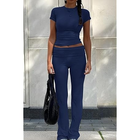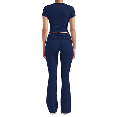 Sản phẩm YETOWA Women's 2 Piece Lounge Outfits Slim Short Sleeve Tops Low Rise Flare Leggings Sets Yoga Sweatsuit đang được bán với giá ưu đãi là $21.7891 tại nước Mỹ.