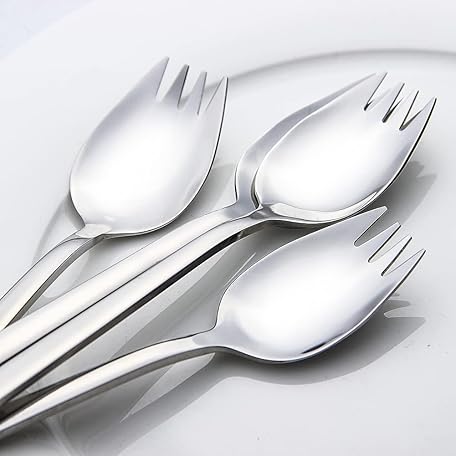 Thông tin sản phẩm YFWOOD Sporks, 4-pack 18/10 Stainless Steel Dessert Spoons 7.4Inches Long Handle Ice Cream Spoons Salad Forks Flatware Set Reusable Fruit Appetizer Dessert Forks for Household Use or Camping