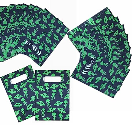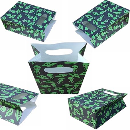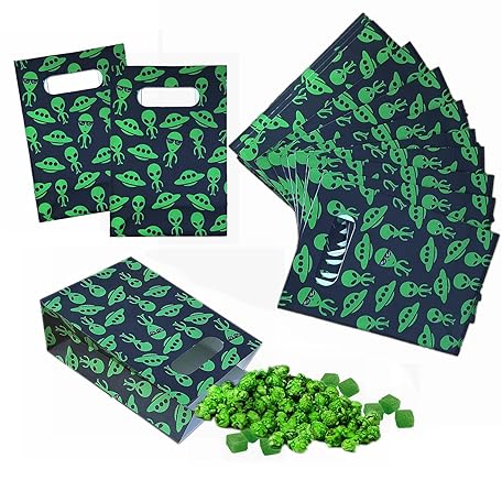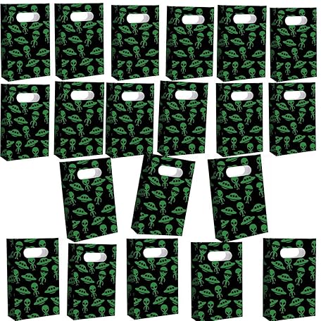 YiiiGoood 20pcs Cute Alien Party Bags UFO Goodie Treat Gift Paper Bags Birthday Party Bags Party Favor Bags for Alien Fans Outer Space Themed Baby Shower 1st Birthday Party Decorations Supplies