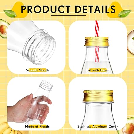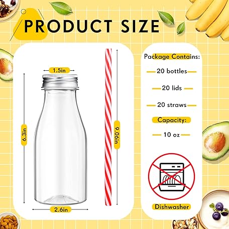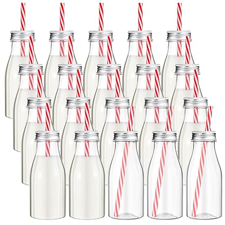 Sản phẩm Yinkin 20 Set 10 oz Plastic Milk Bottles with Straws Metal Lids Clear Plastic Containers for Dairy Milk Party Bottle for Juices Shakes Smoothies(Red, White) đang được bán với giá ưu đãi là $30.5091 tại nước Mỹ.