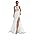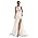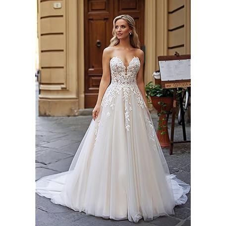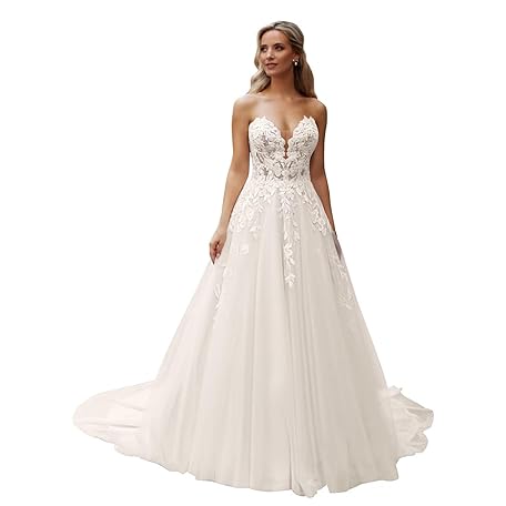 • yinyyinhs Lace Appliques Wedding Dresses for Bride Long V Neck Tulle Chiffon A-Line Sleeveless Bridal Ball Gown with Slit