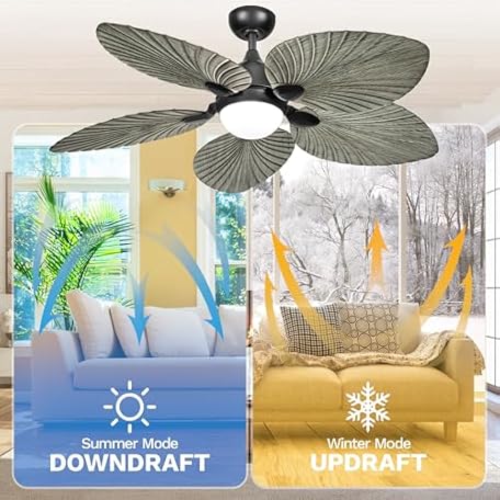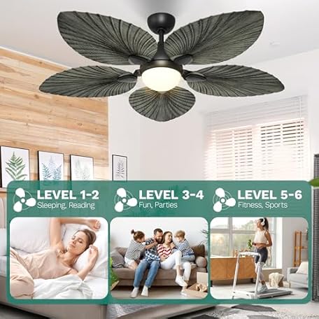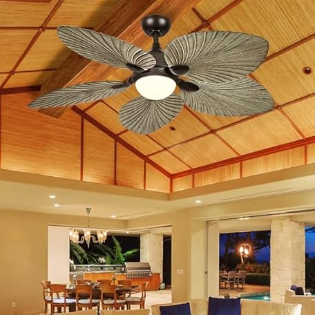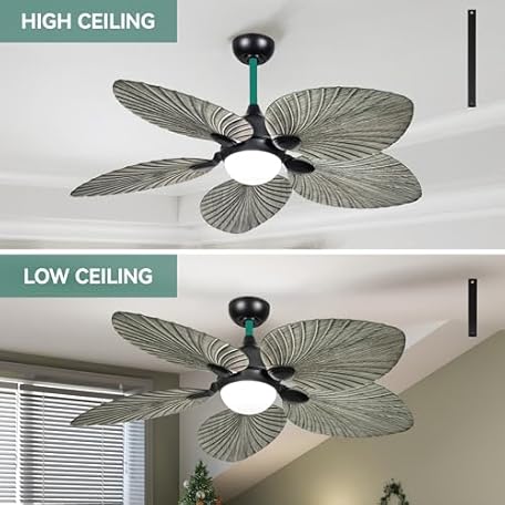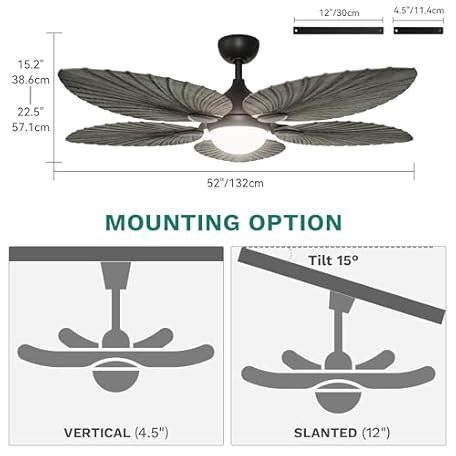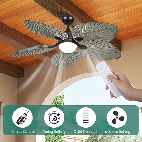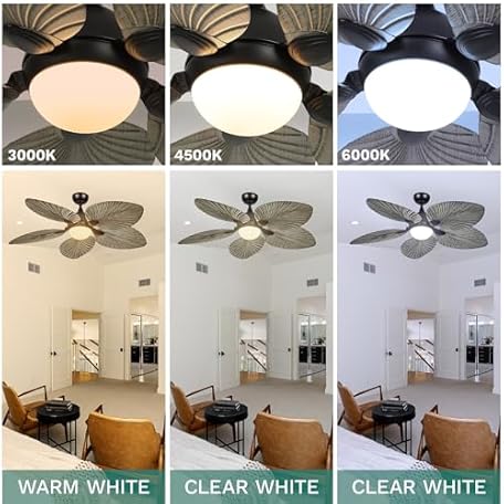 YITAHOME 52 inch Ceiling Fans with Lights, Tropical Ceiling Fans with Lights and Remote, Tri-Color LED, Reversible 6-Speed w/Quiet DC Motor Timing Functions for Living Room, Dining Room, Bedroom