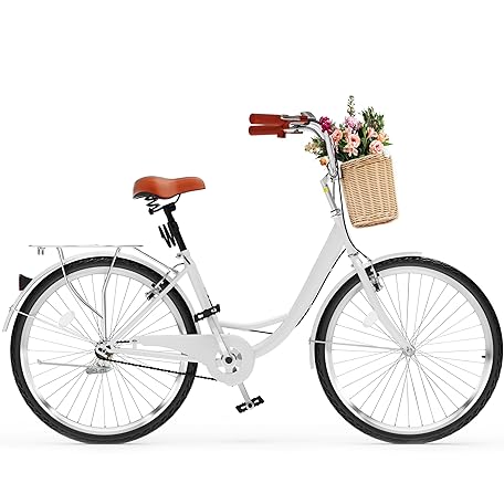 YITAHOME Beach Cruiser Bike for Women, 24 & 26 inch Commute Bike for Adults, 1 & 7 Speed Womens Bicycle with Basket Adjustable Seat, Multiple Color