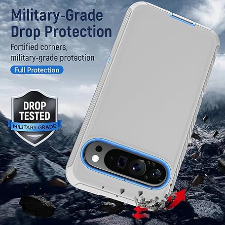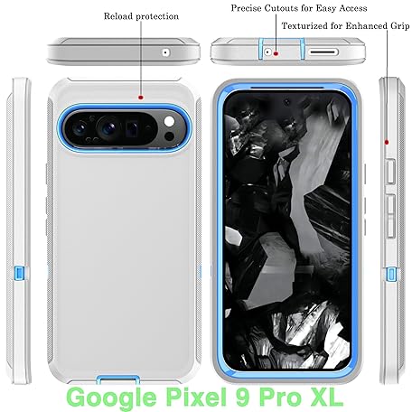 YmhxcY 3-in-1 skockproof Designed for Google Pixel 9 Pro XL Case,Heavy Duty Rubber Protection Cover,Military Grade Shockproof Secure Layered Phone Case for Pixel 9 Pro XL 6.8”-Grey and Dark Blue