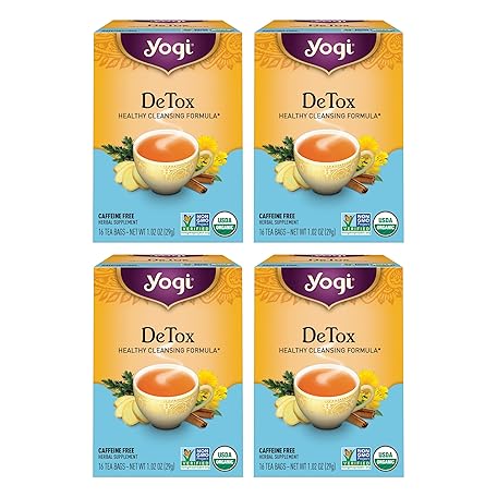 Thông tin sản phẩm Yogi Tea DeTox Tea - 16 Tea Bags per Pack (4 Packs) - Organic Detox Tea for Digestive & Circulation Support - Includes Burdock, Dandelion, Ginger Root, Black Pepper, Cardamom & Juniper Berry