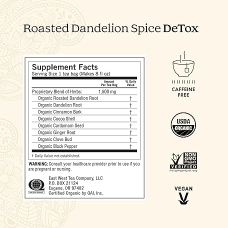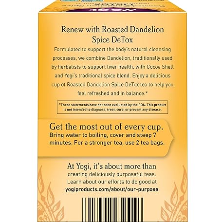 Thông tin sản phẩm Yogi Tea Roasted Dandelion Spice DeTox - 16 Bags per Pack (4 Packs) - Organic DeTox Tea - Includes Roasted Dandelion Root, Dandelion Root, Cinnamon Bark, Cocoa Shell & More