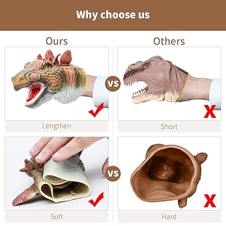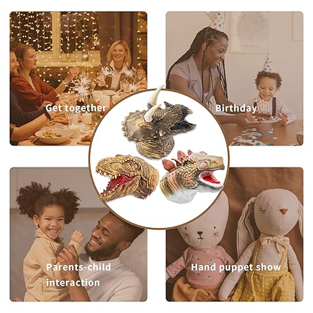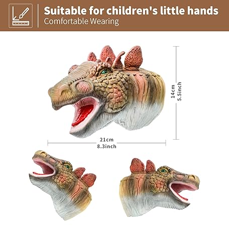 Thông tin sản phẩm Yolococa Dinosaur Hand Puppets Realistic Latex Soft Animal Head Toys Set, Hand Puppet Toys Gift for Kids, Party Show Imaginative Play (Tyrannosaurus & Triceratops & Stegosaurus)