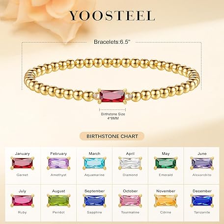 Sản phẩm Yoosteel Dainty Birthstone Bracelet for Women - Elastic 14K-Gold-Plated Bead Bracelets Trendy Friendship Birthday Jewelry Gifts Christmas Stocking Stuffer for Women đang được bán với giá ưu đãi là $8.7091 tại nước Mỹ.