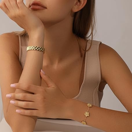 Thông tin sản phẩm YOQ Stackable Four Leaf Clover Bracelets for Women, 18K Gold Plated Bangle Bracelets Set, 2 Pcs Charm Jewelry Gifts