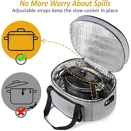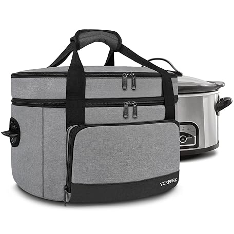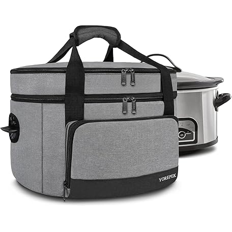 Thông tin sản phẩm YOREPEK 2 Layer Slow Cooker Carrier, Compatible with 6, 7, 8 Quart Crock-Pot, Insulated Large Slow Cooker Travel Bag with Bottom Pad Lid Fasten Straps, for Family Gathering Potluck, Gift for Women