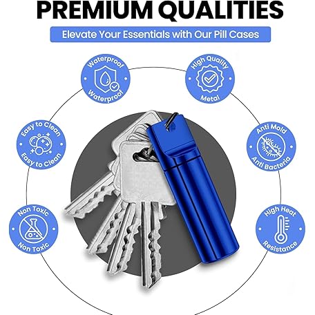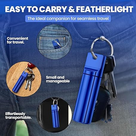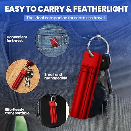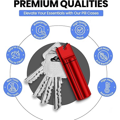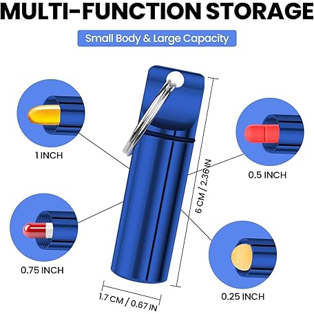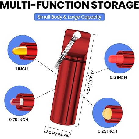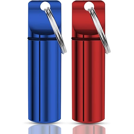 YourRx Keychain Pill Holder – Waterproof Travel Pill Organizer Pill Container for Tablets, Capsules – Travel Friendly Pill Case for Purse Mini Pill Case (Red and Blue)