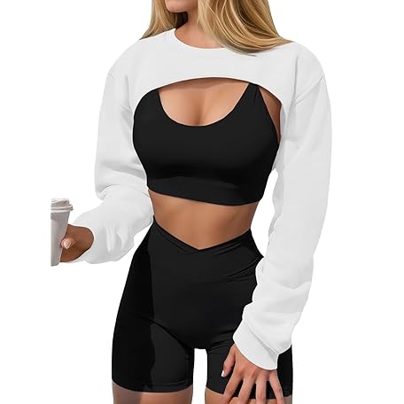 Yousify Womens Cropped Sweatshirt Shrugs Long Sleeve Workout Gym Cover Ups Bolero Shrug Y2k Super Crop Tops