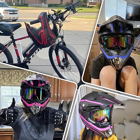 Youth Adult Dirt Bike ATV Helmet Motocross Anti-Collision Full Face Motorcycle DOT Approved BMX Downhill Off-Road Mountain Bike Helmet with SUV Goggles Gloves Face Shield