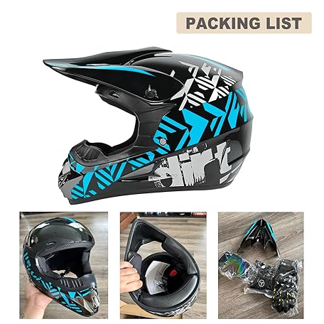 Youth Dirt Bike Helmets DOT Approved Fashion Kids Motocross, ATV, Off-Road, Four Wheelers, BMX Motorcycle Bike Helmets (Goggles Gloves Faceshield)