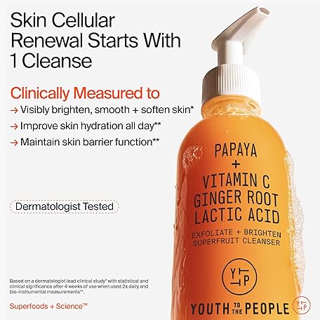 Thông tin sản phẩm Youth To The People Superfruit Facial Cleanser - Papaya + Vitamin C Gentle Exfoliating Face Wash, Cellular Skin Renewal with AHA + BHA, Evens Skin Tone & Texture for Soft + Radiant Skin, Sulfate-free