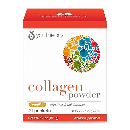 Thông tin sản phẩm Youtheory Collagen Powder - Premium Collagen Supplement with Vitamin C & Biotin - Healthy Hair, Skin, Nails & Joints - Hydrolyzed & Highly Absorbable - Dairy, Soy & Gluten Free - Vanilla - 21 Packets