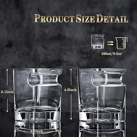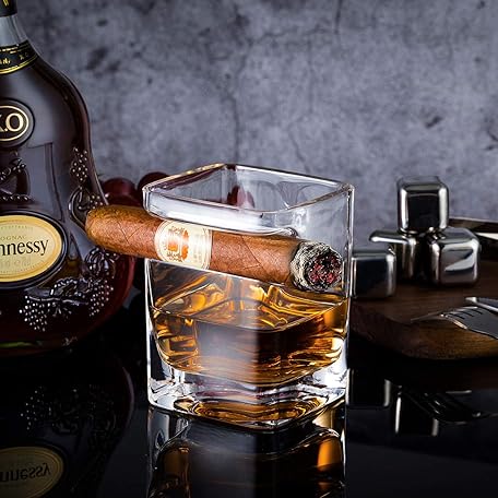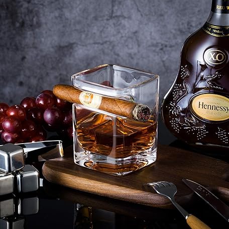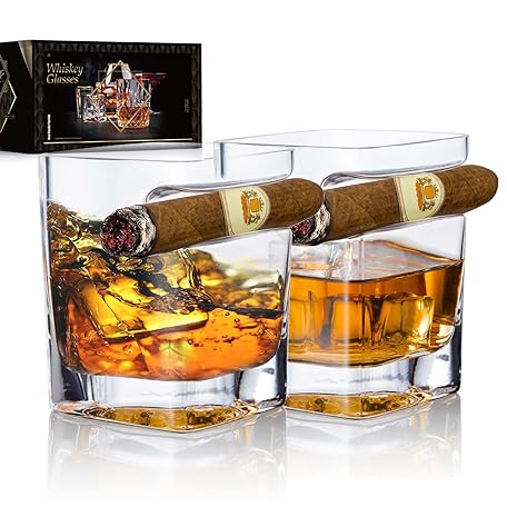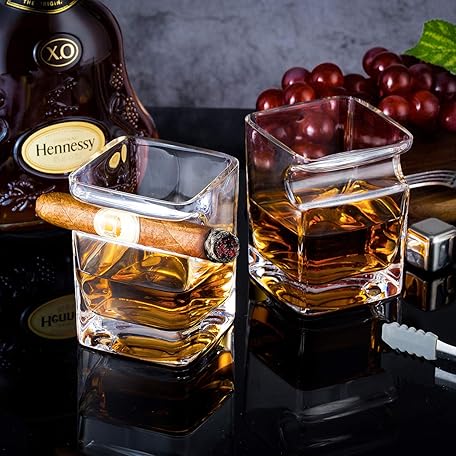 Thông tin sản phẩm YouYah Cigar Whiskey Glasses with Cigar Holder-Set of 2,Cigar Accessories,Crystal Whisky Glass Set with Indented Cigar Rest,Premium Rocks Glass,for Brandy,Cocktail,Vodka,Bourbon,Gifts for Men(9.5oz)