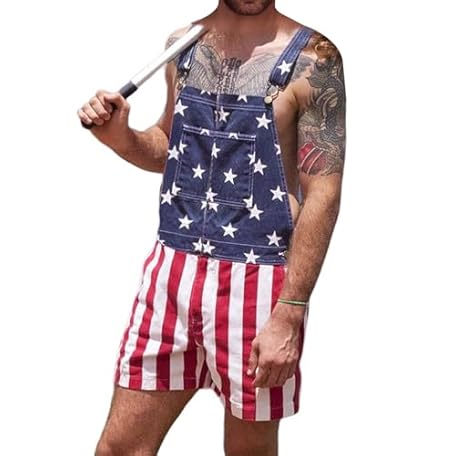 • YSERB American Flag Overalls Men Women 4Th of July Jean Overalls Casual Sleeveless Shorts Romper Adjustable Strap Jumpsuits