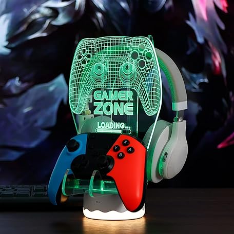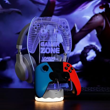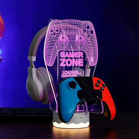 YuanDian Light up Headphone Controller Holder, 16 Colors 3D LED Lights Gamepad Headset Stand, Game Controller Hanger for All Universal Gaming PC Accessories