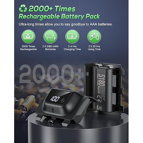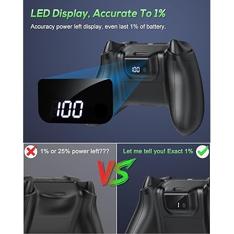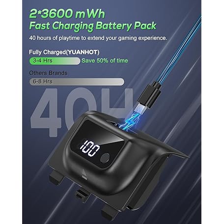 Thông tin sản phẩm YUANHOT Rechargeable Battery Pack for Xbox Series X/S, LED Display 2 Pack 5180mWh Fast Charging for Xbox Controller Battery Pack, Remote Play and Charge Kit for Xbox Series X/S Accessories