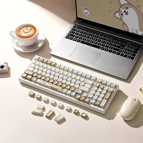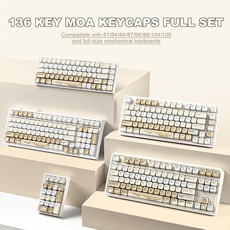 YUNZII 132 Keys MOA Keycaps, Dye-Sublimation PBT Custom Keycap Set for MOA Profile, Cute Bear Customized Pattern Keycaps for MX Switches Mechanical Gaming Keyboard (Butter)
