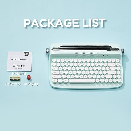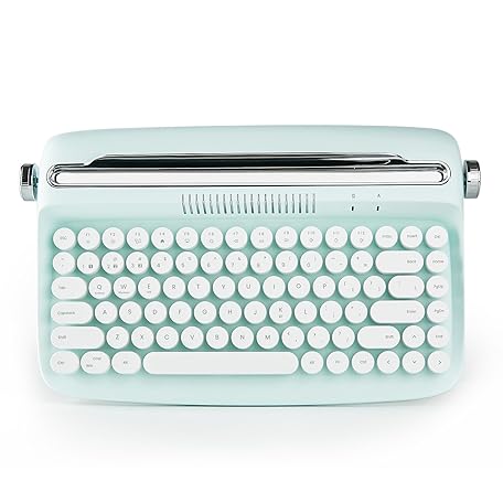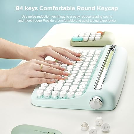 Thông tin sản phẩm YUNZII ACTTO B303 Wireless Typewriter Keyboard, Bluetooth Connection, Cute Retro Aesthetic Design with Integrated Stand for Tablet, Phone, PC and Win/Mac/Android (B303, Sweet Mint)