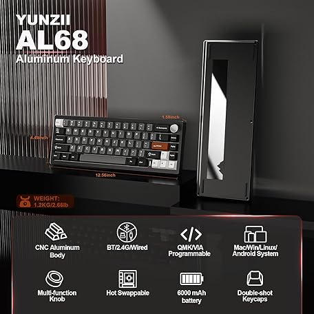 Thông tin sản phẩm YUNZII AL68 Wireless Mechanical Keyboard (Black, Cocoa Cream V2),Spring Tea Keycap Cherry(Cherry Profile, Spring Tea)