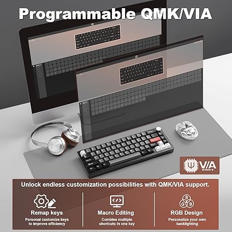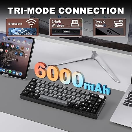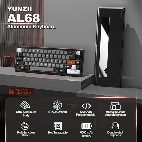 Thông tin sản phẩm YUNZII AL68 Wireless Mechanical Keyboard,Full Aluminum CNC,60% Layout with Knob, QMK/VIA Software,Gasket Mounted,Hot Swappable,RGB Backlit,BT/2.4G/USB-C for Mac/Win (Black, Milk V2)