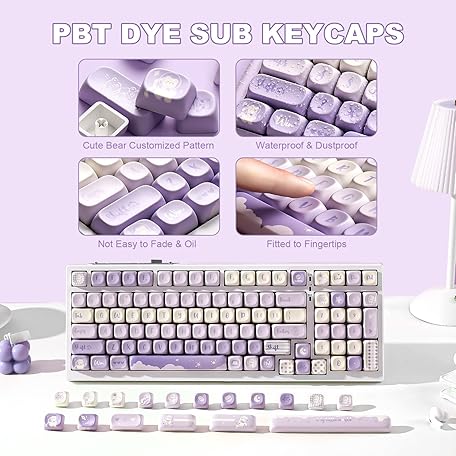 YUNZII AL80 Wireless Mechanical Keyboard(Black, Gateron Zero Switch), 136 Keys MOA Keycaps(Purple)